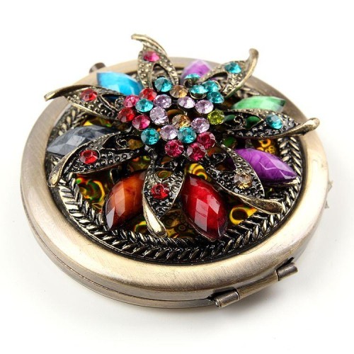 Renkli taşlarla süslenmiş bu makyaj aynasının bir tarafında büyüteçli aynası bulunmaktadır!
