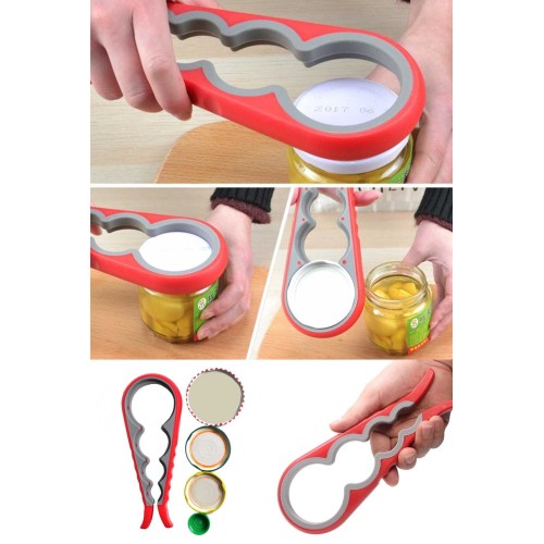 4 Fonksiyonlu Plastik -Silikon Şişe Kavanoz Kapağı Açma Aparatı