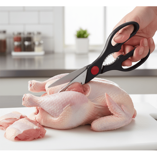Tavuk Makası Paslanmaz Et ve Tavuk Doğrama Makası ; Mutfak işlerinizde elinizin altında bulunması gereken bu makas bütün tavuk ve etlerinizi zorlanmadan dilediğiniz şekilde rahatça kesmenize yardımcı olacaktır.