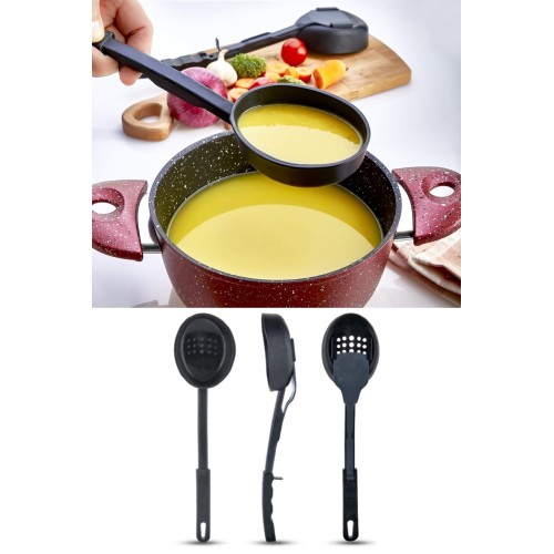 Isıya Dayanıklı 3 in 1 Servis Kepçesi - Kepçe Kevgir Kaşık 3'ü Bir Arada Servis Seti