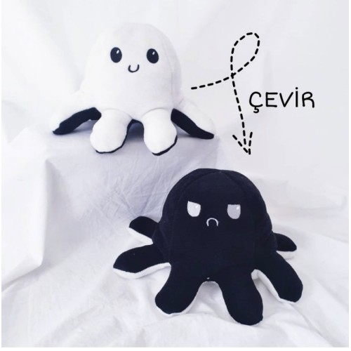 AAhtapot Yastık Çevirdikçe Trip Değiştiren Eğlenceli Yastık Siyah - Beyaz