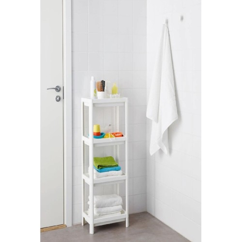 - . En küçük banyolara sığar. Raflarda şampuan şişelerinden, sabun ve küçük eşyalara kadar tüm banyo malzemeleriniz için bol miktarda alan vardır.