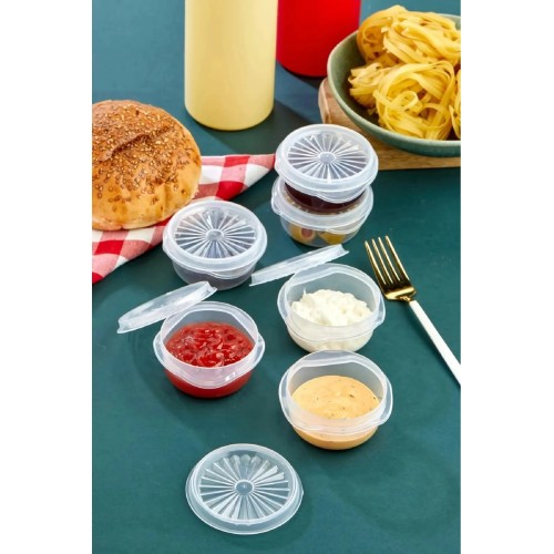6 lı Yelpaze Kapaklı Şeffaf Mini Sosluk- Ketçap Mayonez Kabı- Kahve Yanı Şeker Lokumluk