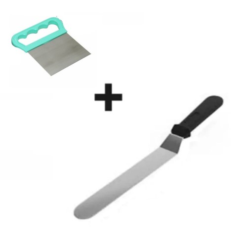 2li Set Hamur Şekillendirici Eğik Pasta Spatulası ve Metal Hamur Kesici Kazıyıcı Spatula