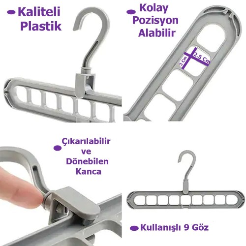Daha çok kıyafet asmak ve yer tasarrufu yapmak için dikey, kırışıklıkların önüne geçmek için yatay konumda kullanın