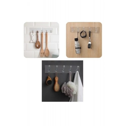 Çok Amaçlı Kendinden Yapışkanlı 5li Şeffaf Askı