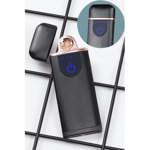 Kapaklı Işıklı USB Şarjlı Çakmak Alevsiz Elektronik Çakmak Rüzgarda Sönmez Kablo Dahil