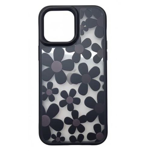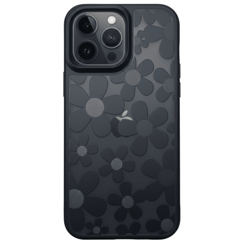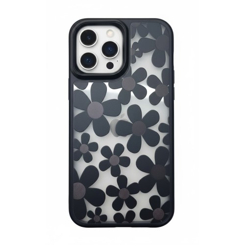 iPhone 16 Pro Max Çiçekli Kılıf Bağlama Aparatlı Siyah