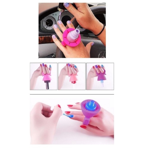 İki parmağınıza yüzük takar gibi oturtuyorsunuz ve oje şişenizi tutucunuzun ortasına yerleştirerek ojenizi sürüyorsunuz