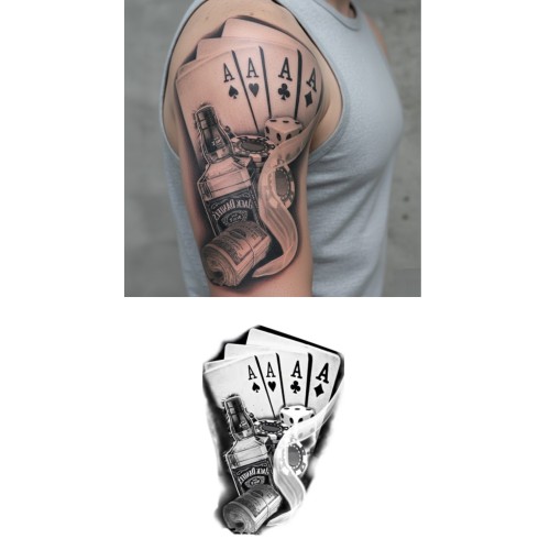 1 Kartela İskambil Dolar Zar Geçici Dövme Şablonu Büyük Boy