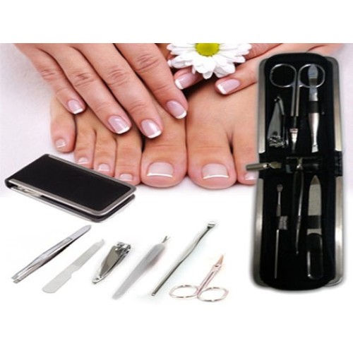 El ve ayak bakımları için gerekli olan herşey bu pakette Deri Çantalı 6 Parça Manikür Seti.