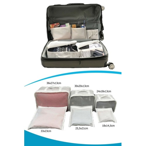 Anne Bebek Hastane Çantası Düzenleyici Organizer 6 Parça Set gri-beyaz çizgili