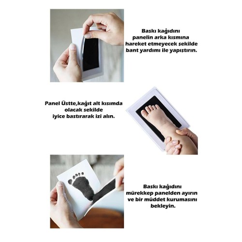 Bebek El ve Ayak İzi Fotoğraf  içerisinde bebeğinizin el ve ayak izini alabileceğiniz Mürekkepsiz Baskı Kiti ile birlikte gelmektedir