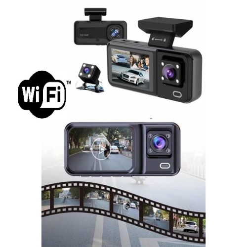 1 Set Araç Kamerası - 3 Kameralı Wifi Ön , İç ve Arka Full HD DVR Araç İçi Ekranlı Kamera