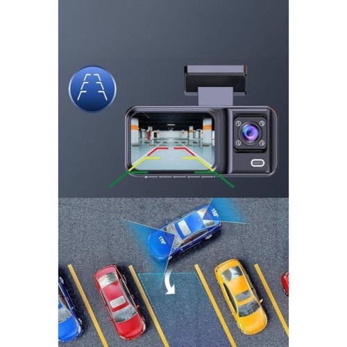 Araç Kamerası - Ön ve Arka Kameralı 2 İnç 1080P Full HD DVR Araç İçi Ekranlı Kamera; biri ön, biri iç, biri de arka olmak üzere toplam üç adet kameradan oluşur. Araç Kamerası - 3 Kameralı Wifi Ön , İç ve Arka Full HD DVR Araç İçi Ekranlı Kamera Tam Size Göredir