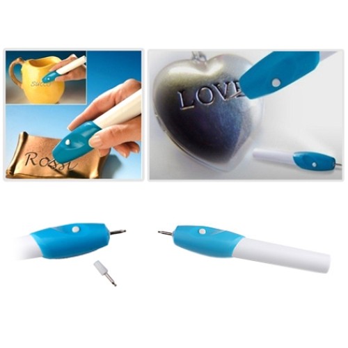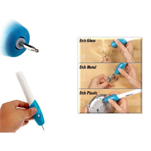 Aynı bir kalem gibi kullanılan pille çalışan bu ürünle eşyaların üzerine kazıyarak yazı yazabilir ve şekil çıkarabilirsiniz!